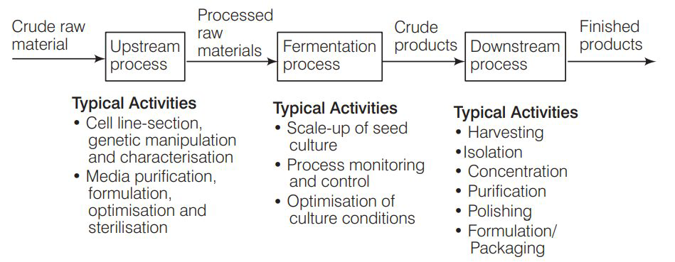 When the products are subjected to a series of processes including separation and purification of the product, it is collectively known as downstream processing. It deals with the post-harvest product, i.e., recovery-clarification, purification, polishing and formulation till the packaging of the desired product.