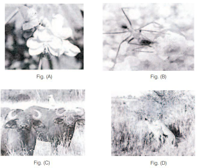 Observe the set of 4 figures $\mathrm{A}, \mathrm{B}, \mathrm{C}$ and D and answer the following questions.